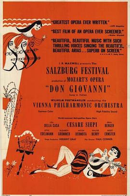 1954年指挥大师富特文格勒在萨尔茨堡音乐节上,指挥维也纳爱乐乐团,上演莫扎特的经典歌剧《唐•乔万尼》,这个珍贵的录像堪称富特文格勒留存至今最完美的影像资料,来自当年奥地利导演保罗•齐纳尔的努力,不计工本,用彩色电影胶片拍摄整个歌剧的演出,由著名的意大利男低音西耶皮演唱剧名主角,瑞士女高音德拉.卡萨演唱艾尔薇拉,堪称一时之选。卡司如下: Otto Edelmann...Leporello - Bass Elisabeth Grümmer...Donna Anna - Soprano Cesare Siepi...Don Giovanni - Bariton Dezsõ Ernster...Commendatore - Bass Anton Dermota...Don Ottavio - Tenor Lisa della Casa...Donna Elvira - Soprano收起