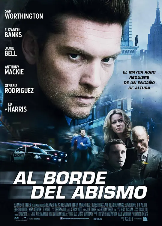 尼克·卡西迪(萨姆·沃辛顿 Sam Worthington 饰)曾经是一名正直负责的警察,却因涉嫌盗窃4000万美元的钻石而获刑25年监禁。他唯一一个离开监狱的机会就是参加父亲葬礼,并在葬礼上趁机逃跑。然而令人不解的是,他并没有出境,而是到曼哈顿酒店开了个24楼的房间,精心擦洗一番后,只为在最繁华的纽约的注视中坠楼。他的举动很快引来了大批警察和媒体,一名年轻的谈判专家莉迪亚(伊丽莎白·班克斯 Elizabeth Banks 饰)试图将其劝回屋内,然而在循序渐进的劝说中,莉迪亚意识到尼克是被钻石的拥有者大卫(艾德·哈里斯 Ed Harris 饰)陷害入狱的,目的则是为了高额保险金。然而更令莉迪亚想不到的是,尼克的自杀只是一个声东击西的幌子,他的弟弟和女友正在街对面的珠宝库大楼中实施复仇计划收起