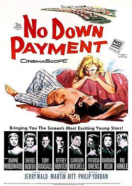 本片以四对夫妻为主角,刻画了上个世纪五十年代美国战后城郊生活的真实面目,在欣欣向荣的城郊开发区,每个人都穿着光鲜亮丽的衣服,住着轩敞舒适的宅邸,过着看似无忧无虑的生活,然而在幸福的表面之下,每个人却都被各自的心魔与困苦折磨着,英国摇滚传奇大卫·鲍威曾在一封信中提到这部电 影“我某天晚上在电视上看了一部叫做“No Down Payment”的老电影,很棒的一部电影,但如果这部电影所刻画的美式生活是真实的的话,那真是太令人抑郁了”。 本片故事开始于年轻夫妇大卫(杰弗瑞·亨特 饰)和珍(帕特里夏·欧文斯 饰)搬进日升山社区,在那里,他们认识了克莱策夫妇赫尔曼(帕特·亨格尔 饰)和贝蒂(芭芭拉·拉什 饰),弗拉格夫妇杰瑞(托尼·兰德尔 饰)和伊莎贝尔(谢瑞·诺丝 饰)以及布恩夫妇特洛伊(卡梅隆·米切尔 饰)和莱奥拉(乔安娜·伍德沃德 饰)。大卫是一个工程师,但他的上司一直劝说他当销售员,因为销售员可以获得更高的工资,他的妻子珍也希望他能去当销售员,这令他十分烦心,更让他烦恼的是,他一直怀疑自己貌美迷人的妻子对自己不忠,担心自己软弱的书呆子个性无法真正地留住妻子。赫尔曼是市议会的成员,在市中心开着一家器具店,他手下的日本裔伙计伊古想要搬进白人社区,恳求赫尔曼帮忙,赫尔曼虽然想要帮忙,却又害怕这事会在社区引起轩然大波,因此和妻子在商量的过程中争吵起来,两人信仰上的差异更是进一步加重了争吵。杰瑞是一名二手汽车销售中介,他沉迷酗酒,喜欢沾花惹草,总是希望自己能出人头地,干一番大事业,妻子伊莎贝尔希望他能停止喝酒,并脚踏实地,找一些稳定的工作,但杰瑞执迷不悟,并为了赚钱开始采取一些为人不齿的非常手段。特洛伊是一名退伍军人,他经营着一家十分成功的加油站,但真正的梦想是想当日升山的警察局长,他的妻子莱奥拉曾生下他的孩子,但因为当时二人并未结婚,莱奥拉不得不选择将孩子送走,夫妻俩常常因为此事而不时争吵,同时,特洛伊对大卫的妻子珍心怀好感,三番两次设法接近她,珍一直尽量与特洛伊保持距离,但特洛伊却没有因此而放弃,大卫和莱奥拉虽然察觉出了端倪,但也无法做出任何实质性的劝阻,四人微妙的关系最终演变成一场悲剧。收起